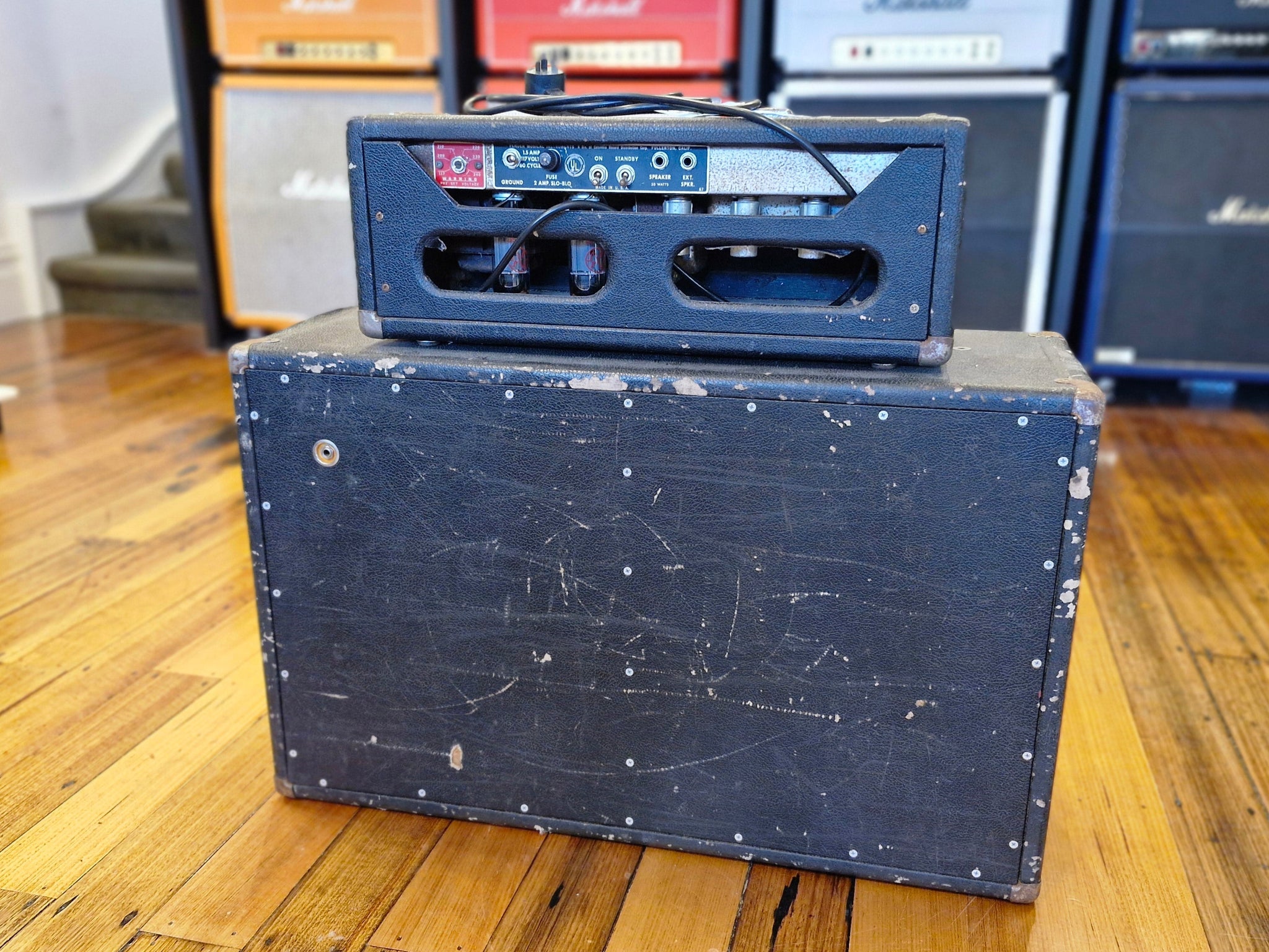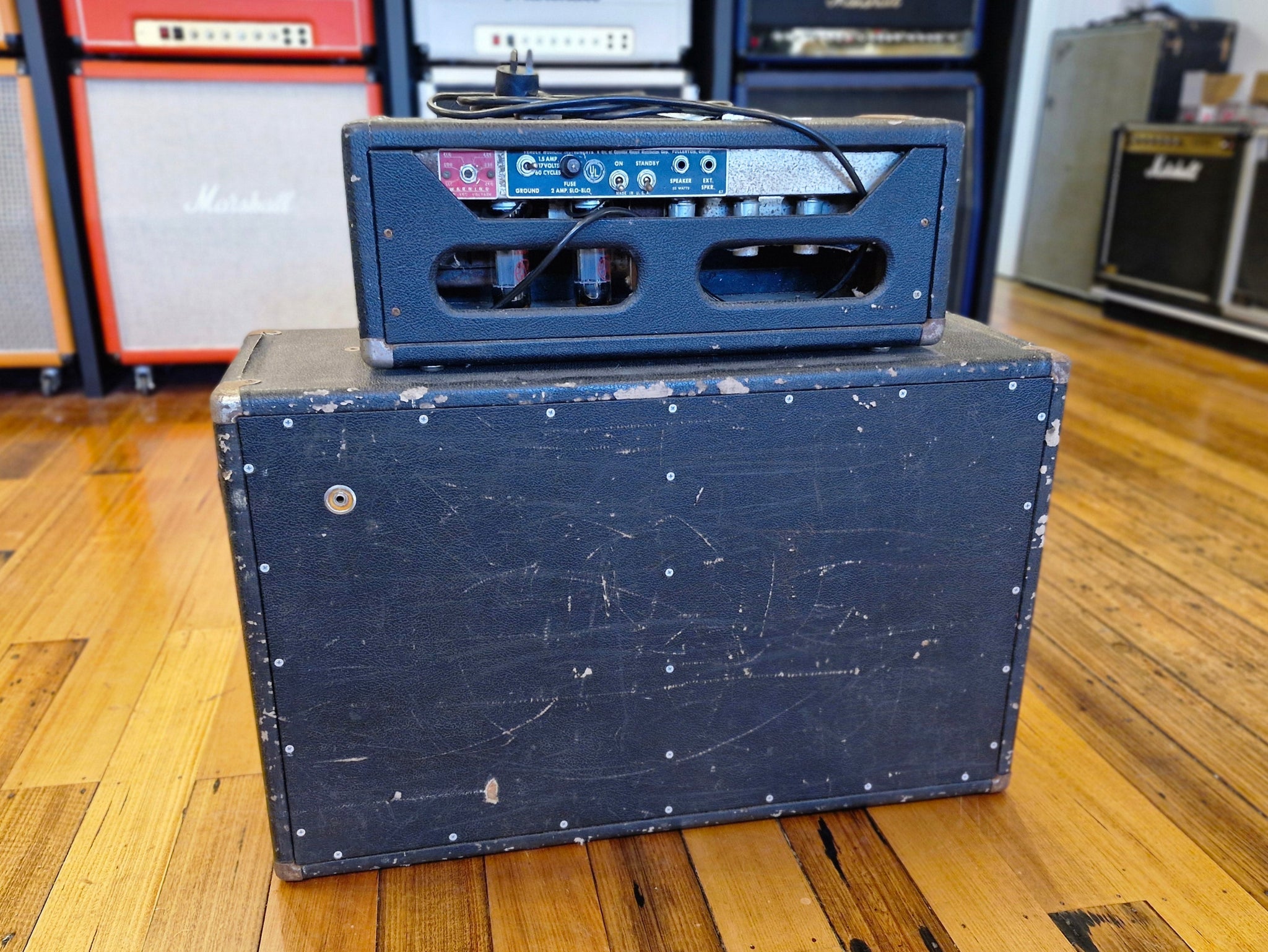 This 1964 Fender Bassman head delivers the iconic Black Panel sound with rich, powerful tones and robust, detailed cleans. Fully functional, it’s an ideal choice for both guitar and bass, providing an exceptional platform for pedals. A rare vintage amplifier, it boasts a distinctive character that enhances its appeal and offers some of the fullest, most beautiful clean tones available. Perfect for musicians seeking authentic vintage sound and reliability.