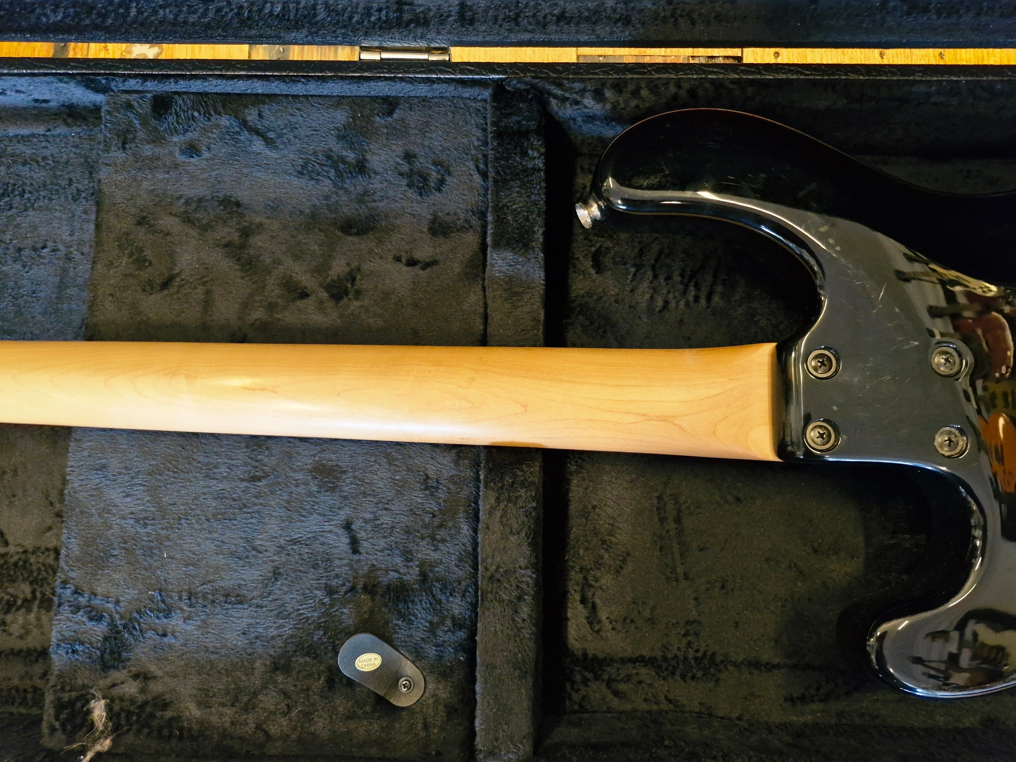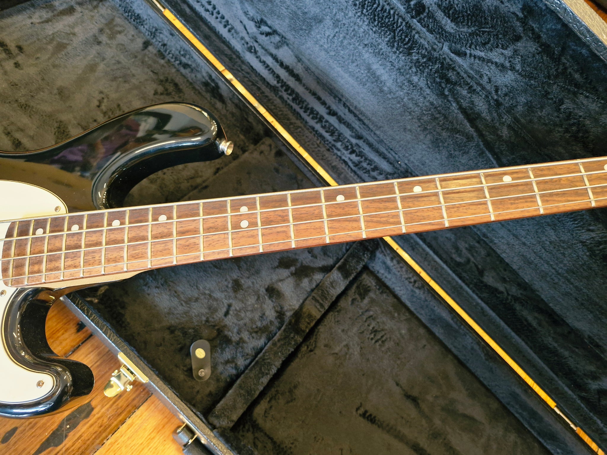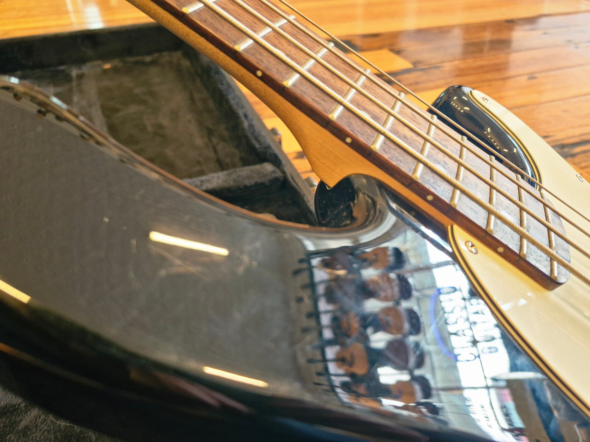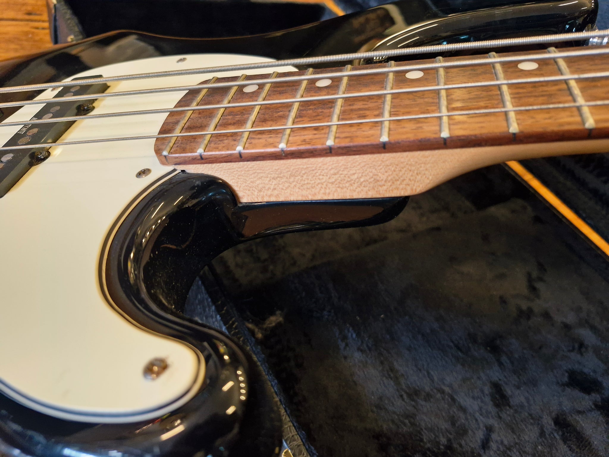 This bass features barely visible scratches and delivers exceptional playability with its lightweight design, making it comfortable for standing performance. The Cort GB34A blends a traditional aesthetic and tone with modern functionality, equipped with Jazz-MM humbuckers and an active 2-band EQ that offers both active and passive modes via a push-pull volume control. Crafted with a poplar body, Canadian hard maple neck, and rosewood fingerboard, it provides a 34" scale and reliable hardware for professional use. This combination ensures versatile sound and enhanced performance for discerning bassists. Comes with a gig bag.