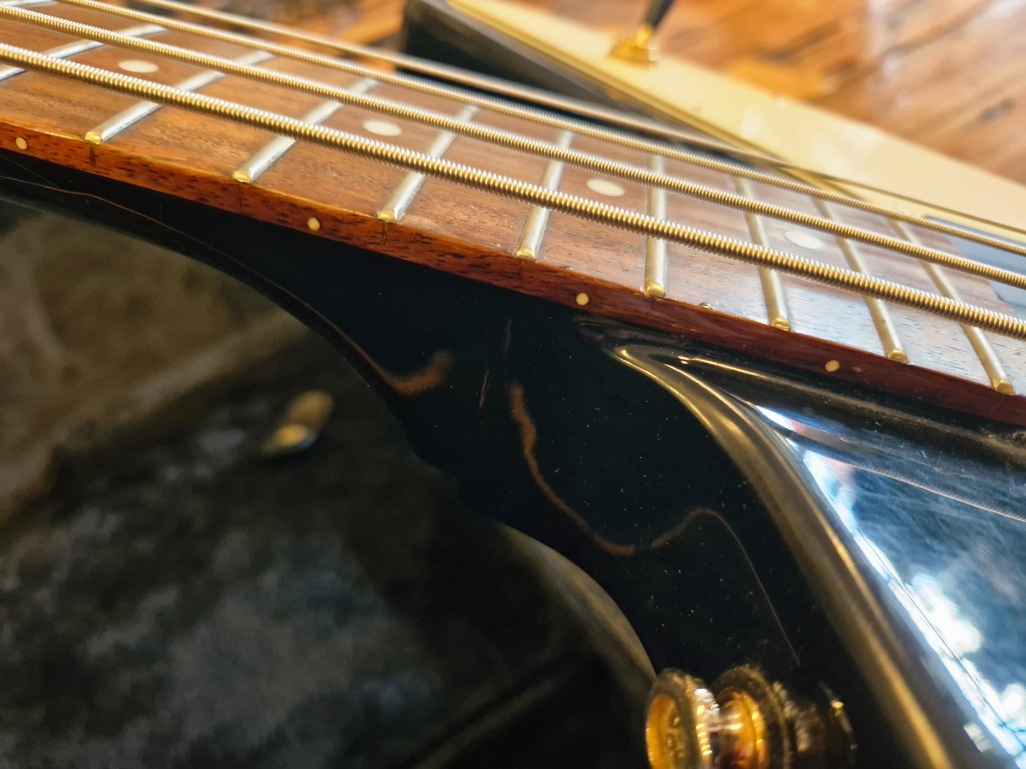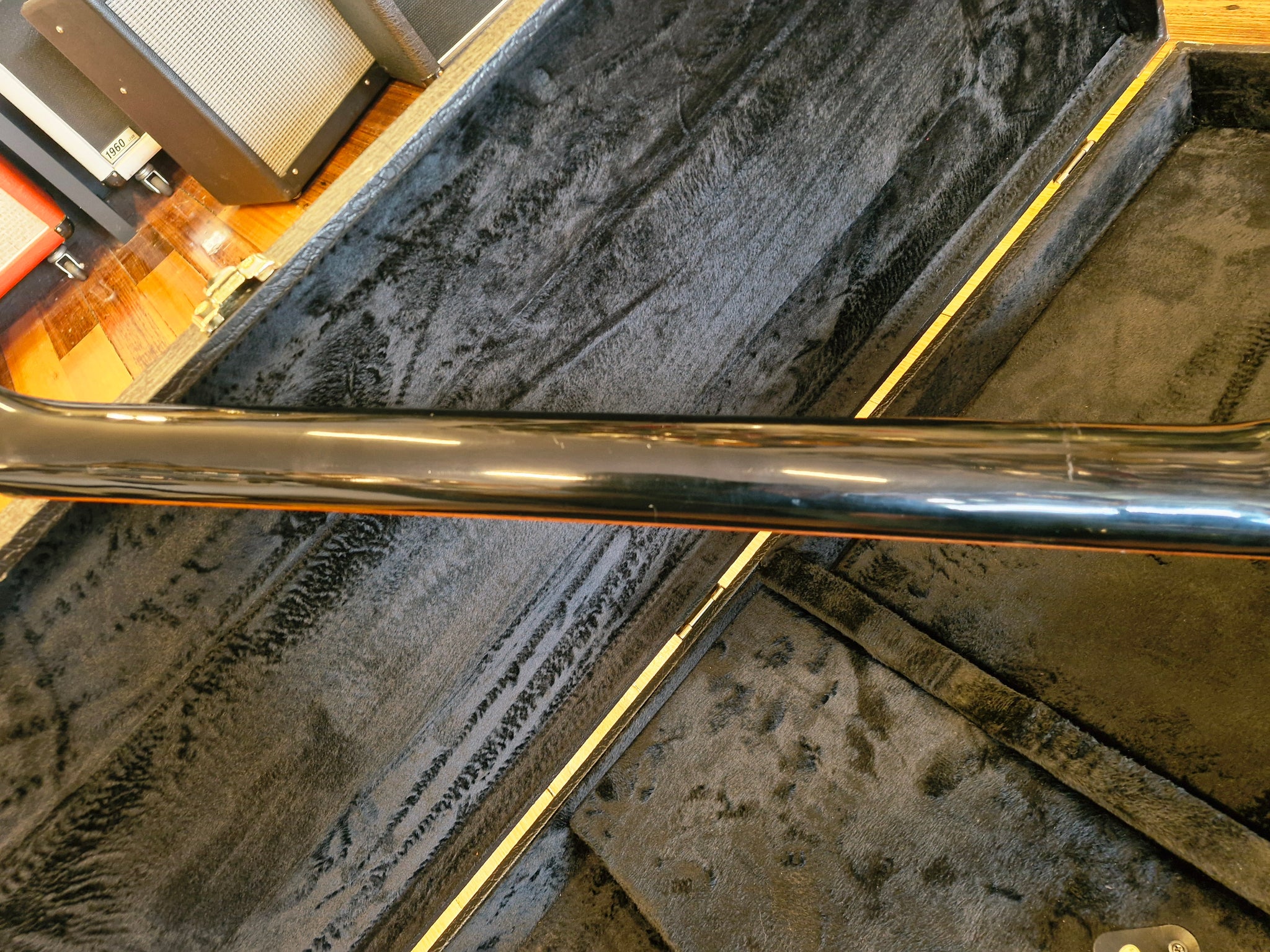 The Epiphone Explorer Bass shows charming signs of wear, including minor dents, scratches, and a small chip, all contributing to its authentic vintage appeal. Crafted with a korina wood body and a 34" scale mahogany neck, its bold Explorer shape allows easy access to the 20-fret rosewood fingerboard. The slim-taper neck profile provides a comfortable, fast playing experience. Equipped with two Epiphone TB-Plus humbucking pickups, it delivers a powerful output with rich lows, distinct mids, and bright highs. Controls feature two volume knobs, one master tone, and a three-way toggle switch. Gold hardware includes precision die-cast tuners and a fully adjustable fixed bridge. Note: the case shown is for display only.