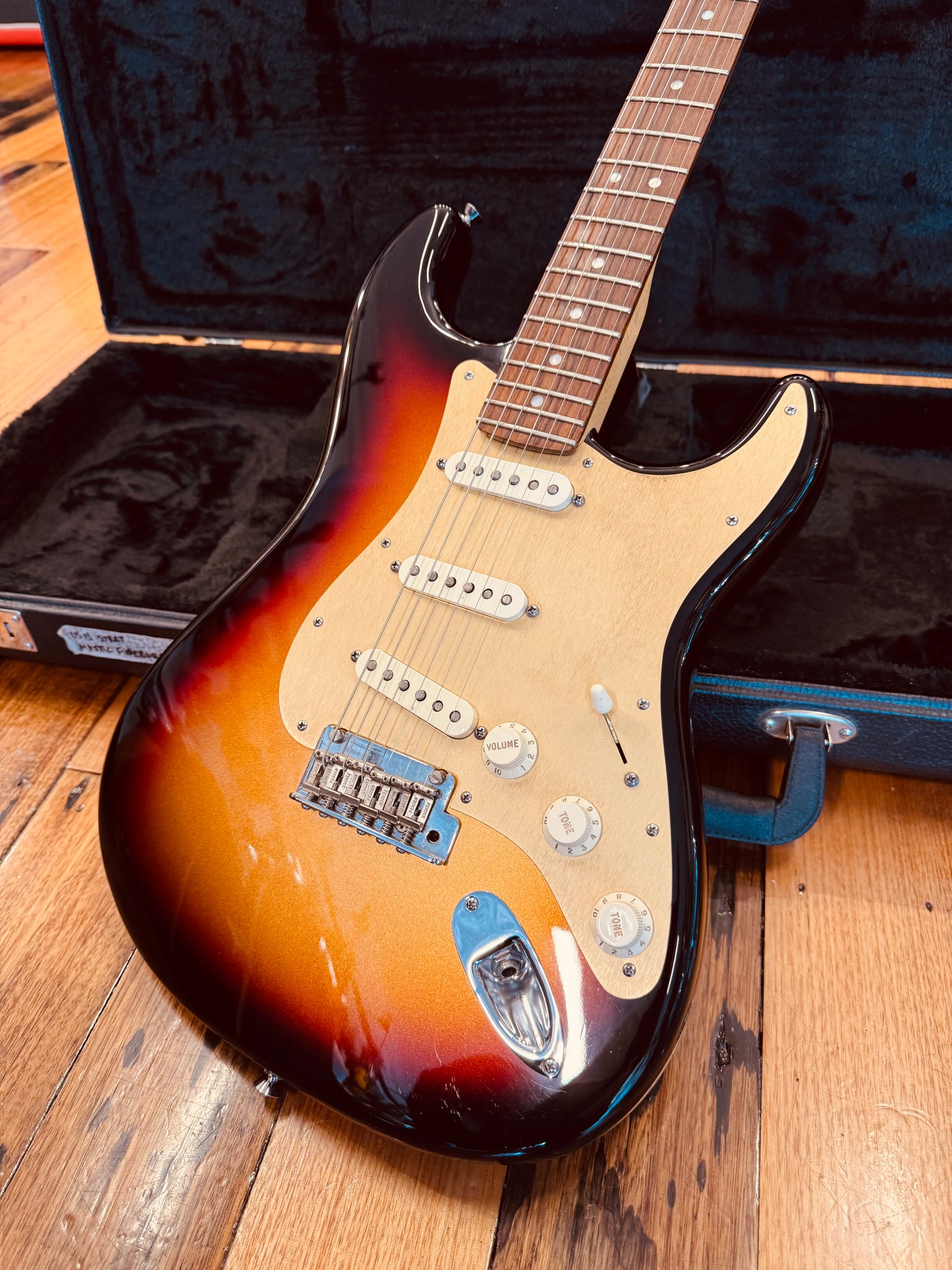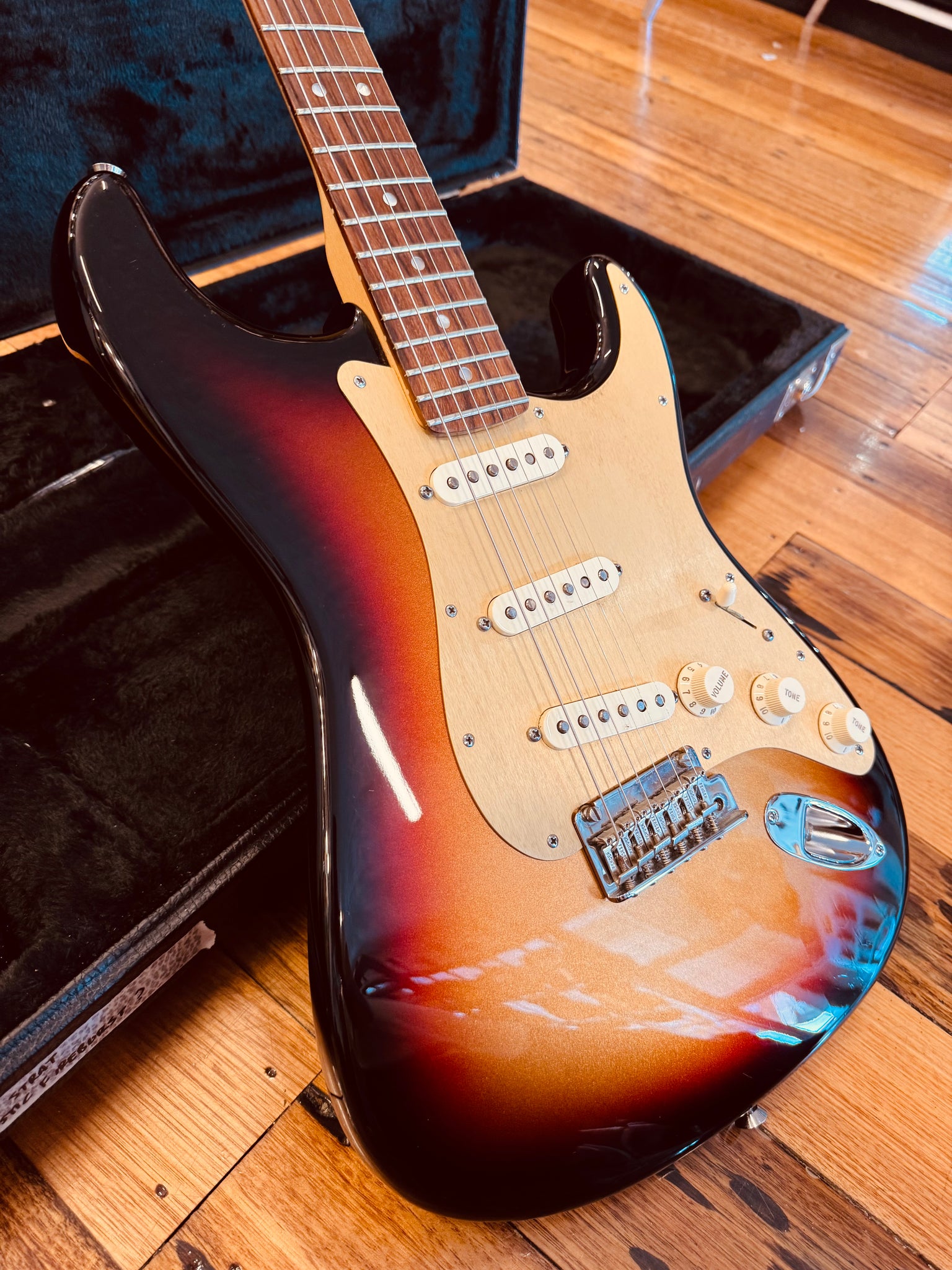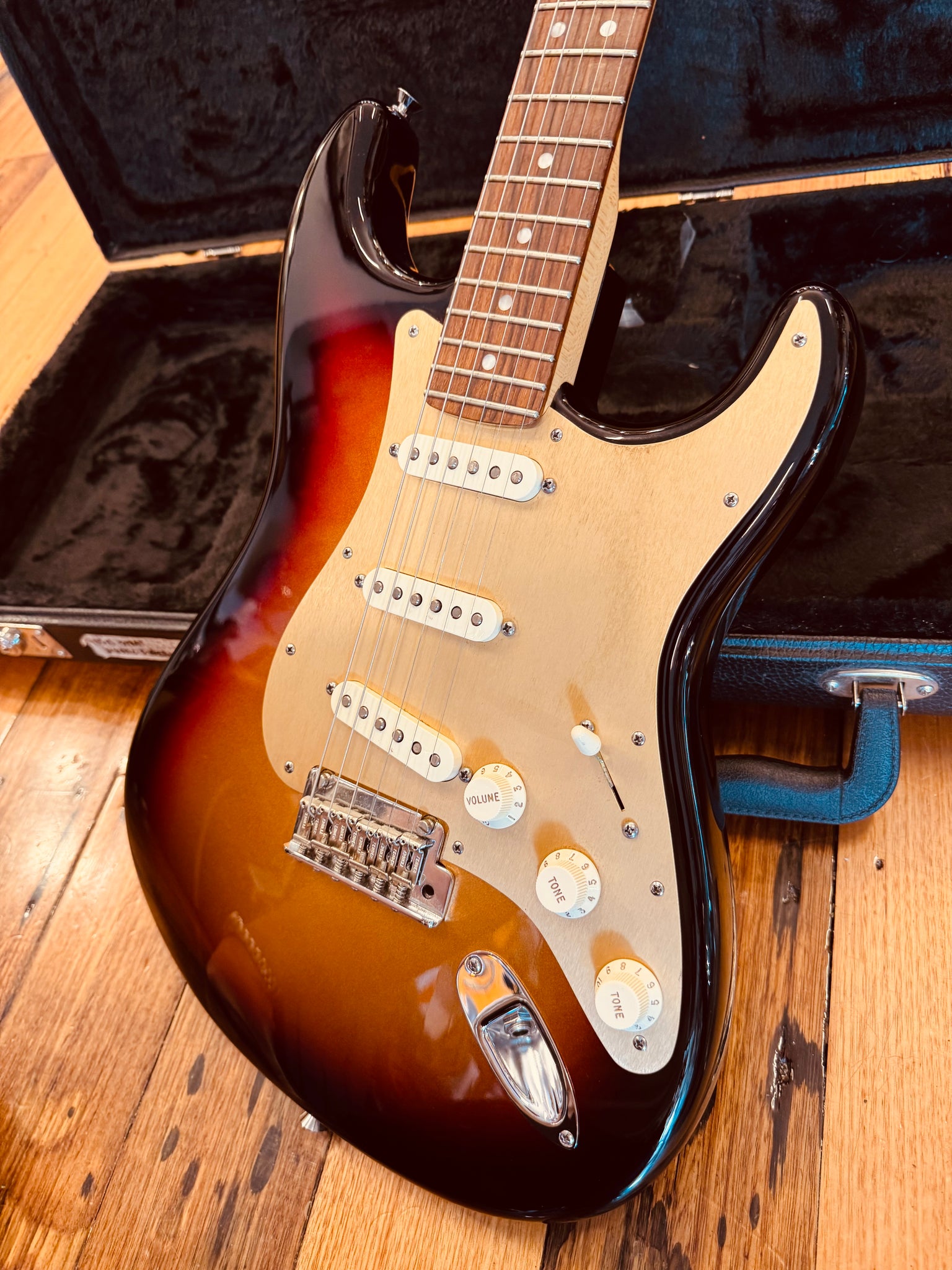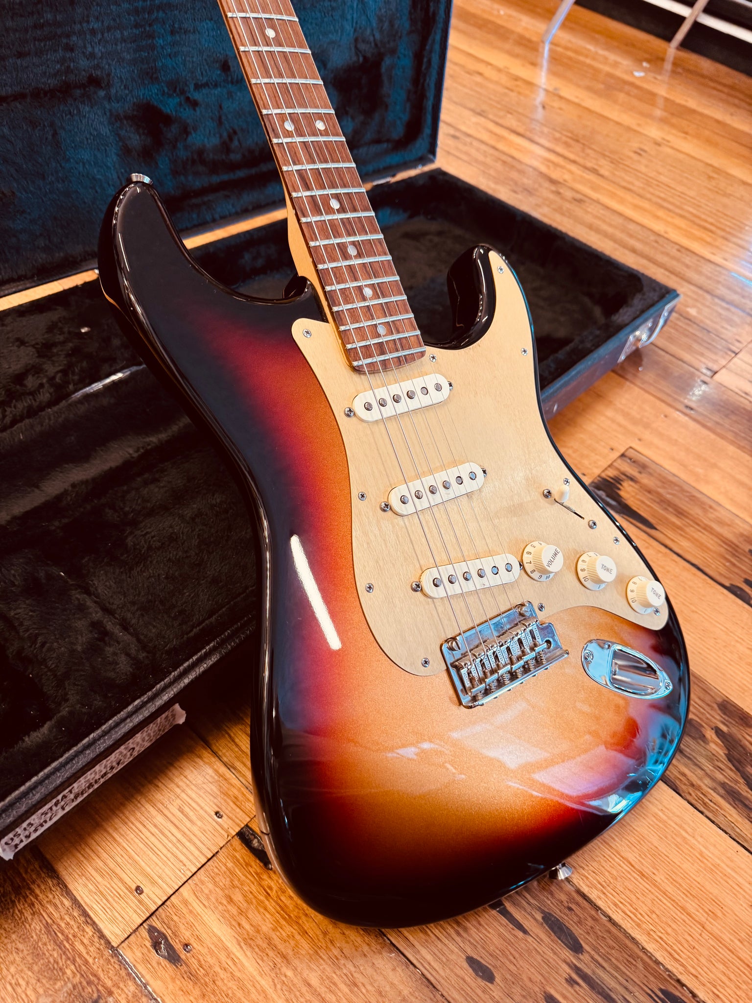 This lightly used 2013 Fender FSR (Factory Special Run) Special Edition Stratocaster is a stunning example of Fender’s craftsmanship and creativity. Finished in the eye-catching Mystic 3-Color Sunburst and paired with an anodized gold pickguard, it has a look that’s both classic and unique.