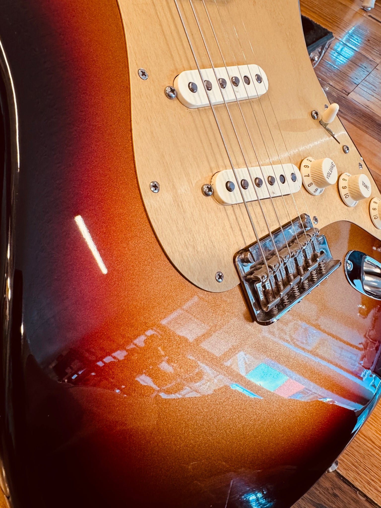 Under the hood, this Strat is loaded with a trio of Fender Custom Shop ’50s single-coil pickups featuring no-load tone controls, delivering shimmering cleans and punchy, vintage-inspired tones. The soft “V” profile neck with a compound 9.5”–14” radius fingerboard ensures effortless playability across the entire neck.