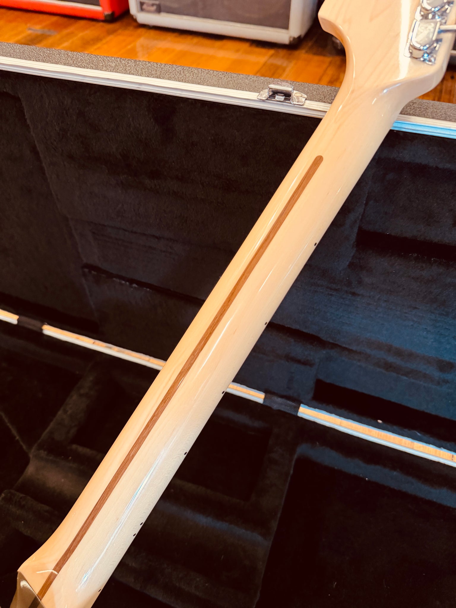 The body is built from ash with a high-gloss burst finish that looks absolutely stunning in person. It’s paired with a maple neck and fingerboard carved into a comfortable “U” profile, making it easy to dig in whether you’re laying down chunky rhythm or bending through leads. The 9.5” fingerboard radius and vintage-style frets keep things feeling classic while still offering smooth playability.