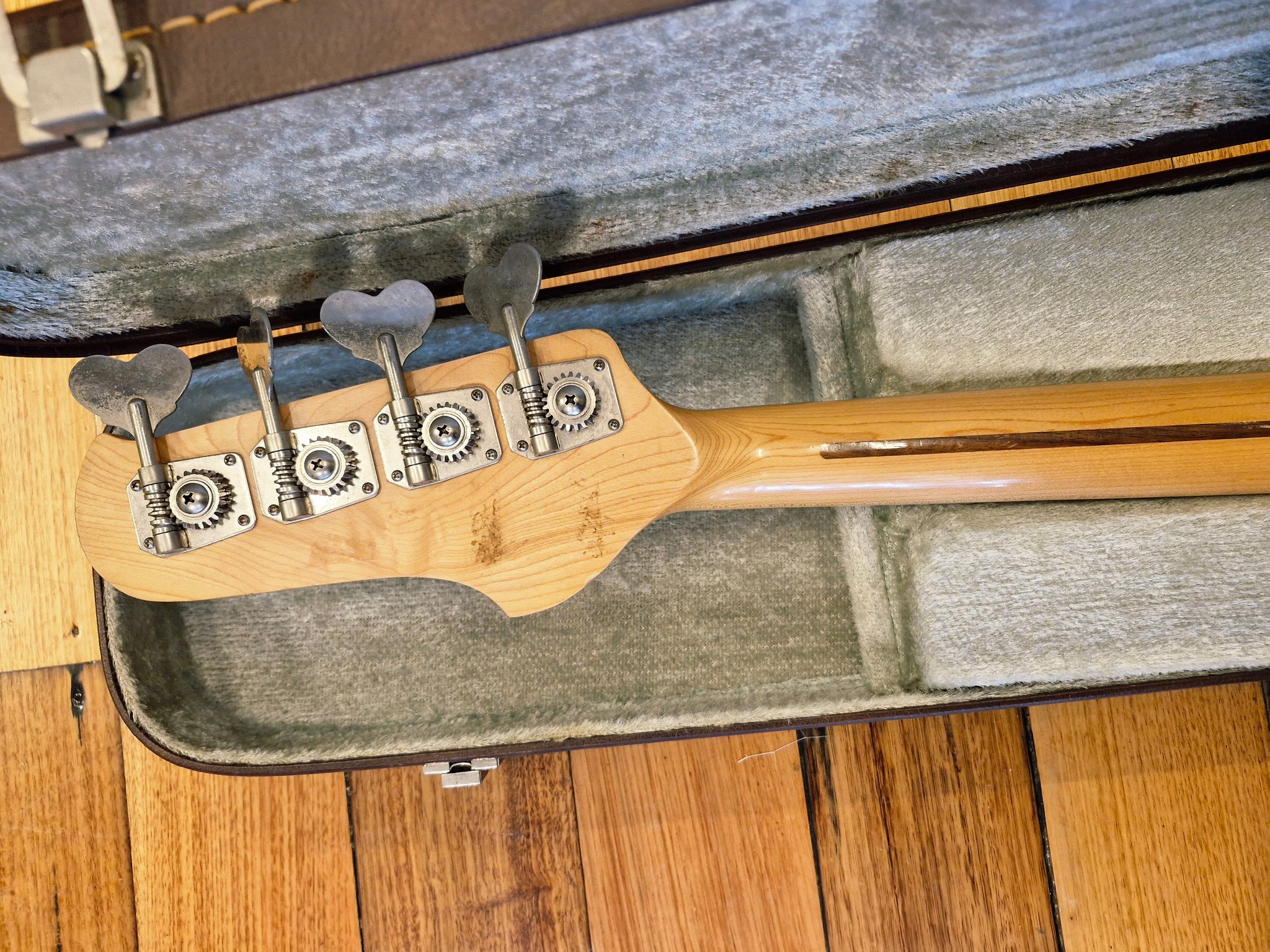 This Ibanez Blazer Bass, is in very good condition with minor nicks that add character but do not impact its playability. It features an ash body in an ST-style shape, The bass has a 648 mm scale length, and a maple neck with a maple fretboard and 21 frets. Its electronics include a two single-coil pickups, all finished in a striking red colour. It comes with the original case.