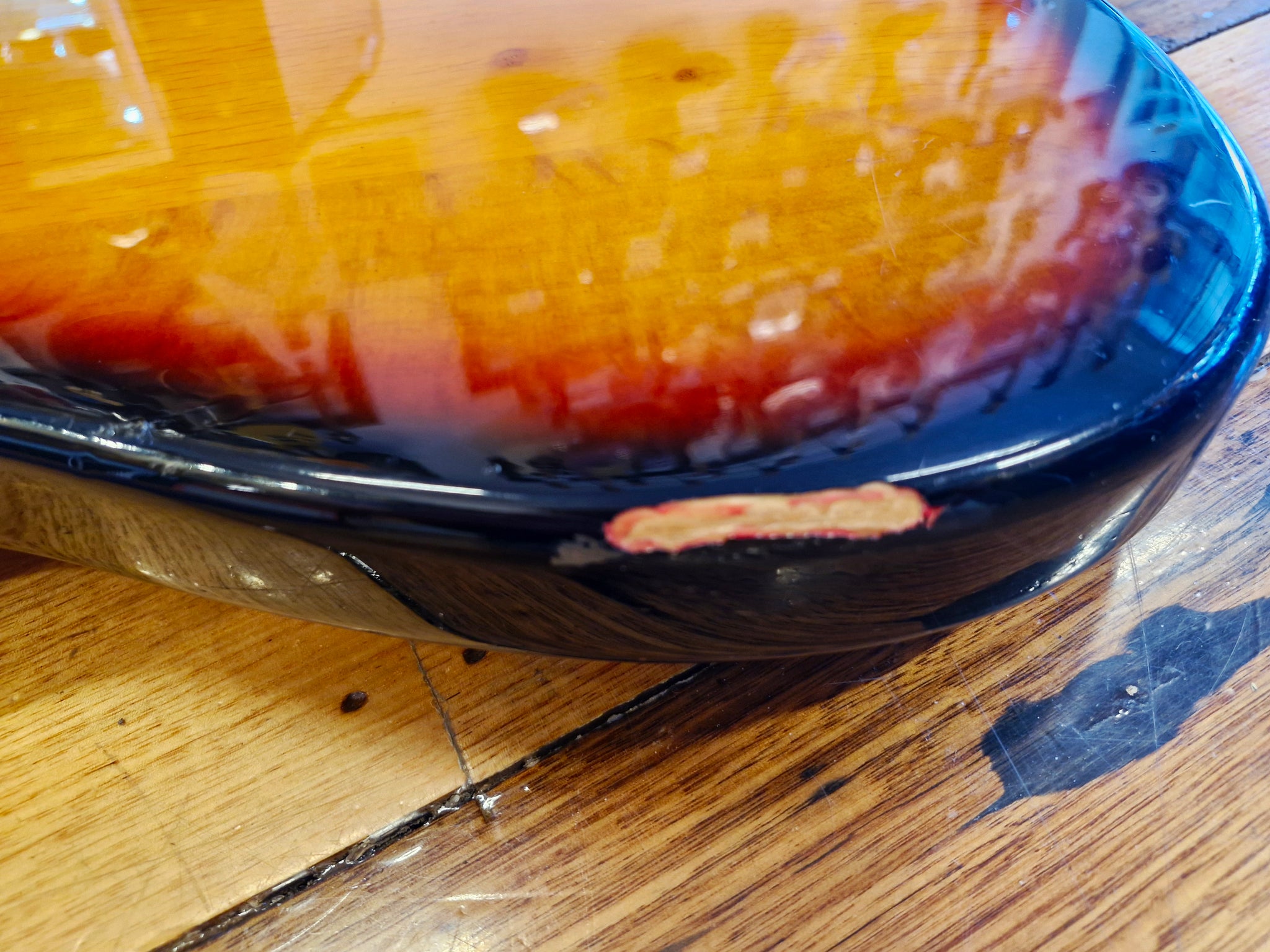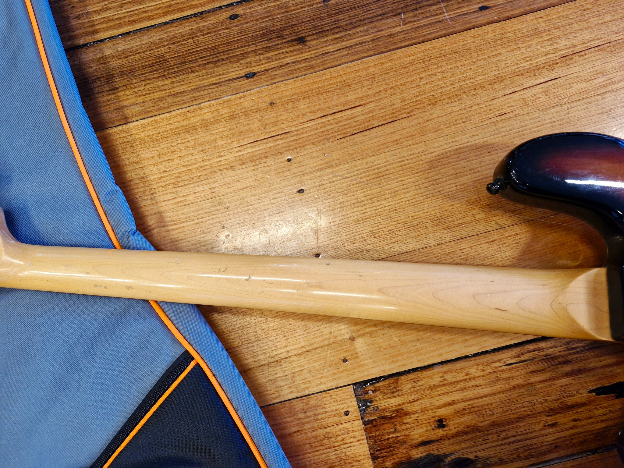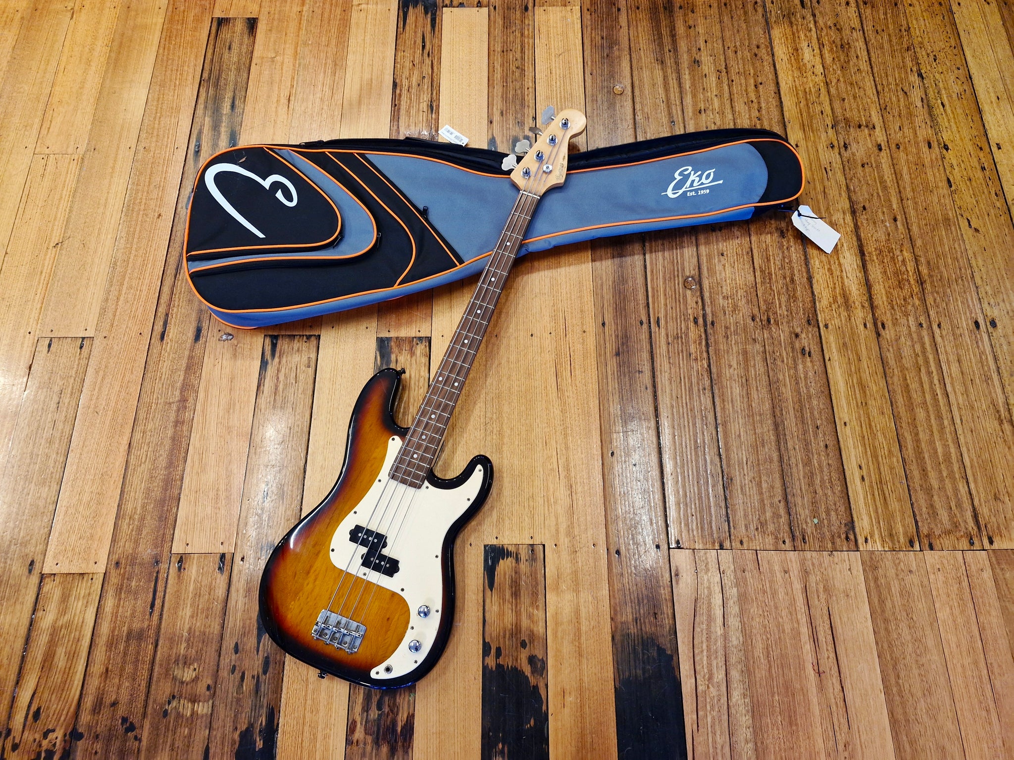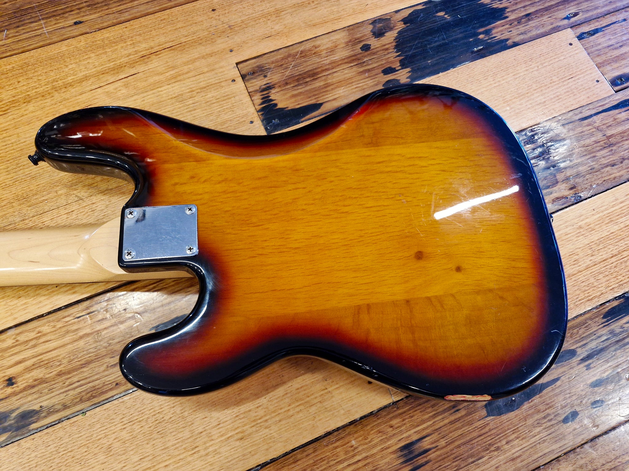 Ideal for beginning bass players seeking an instrument with character and proven durability. This well-played model bears minor cosmetic wear—light scratches along the neck and a small body chip—that attest to its road-tested construction without compromising performance or playability. Includes a protective gig bag for transport and storage.