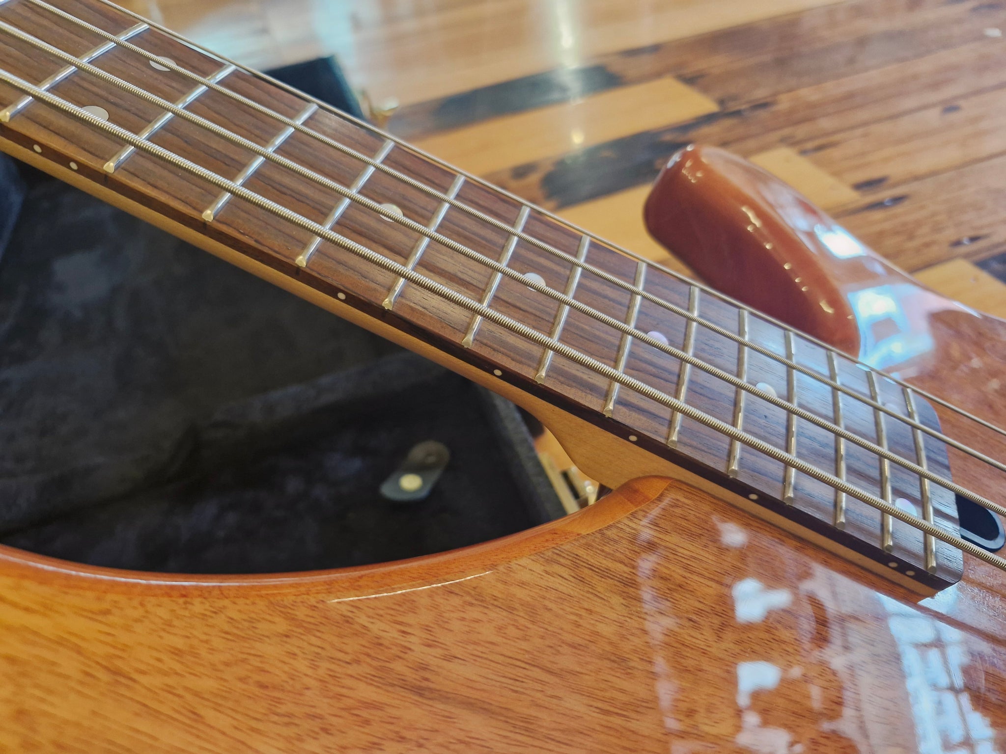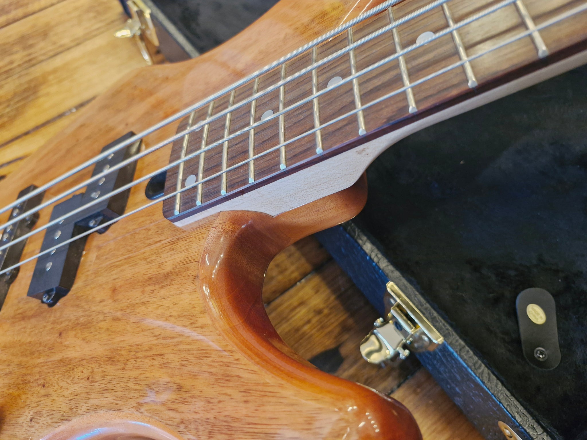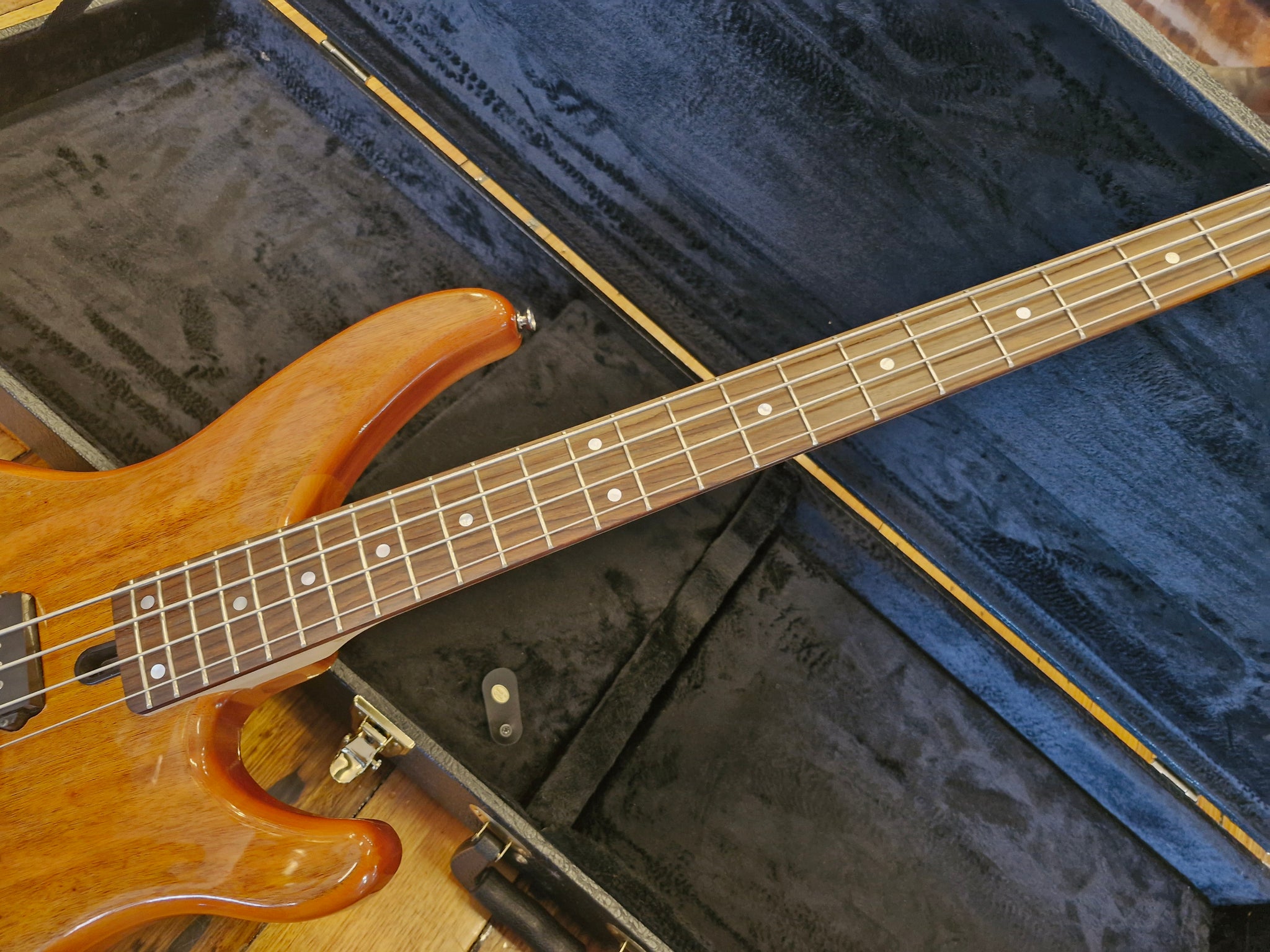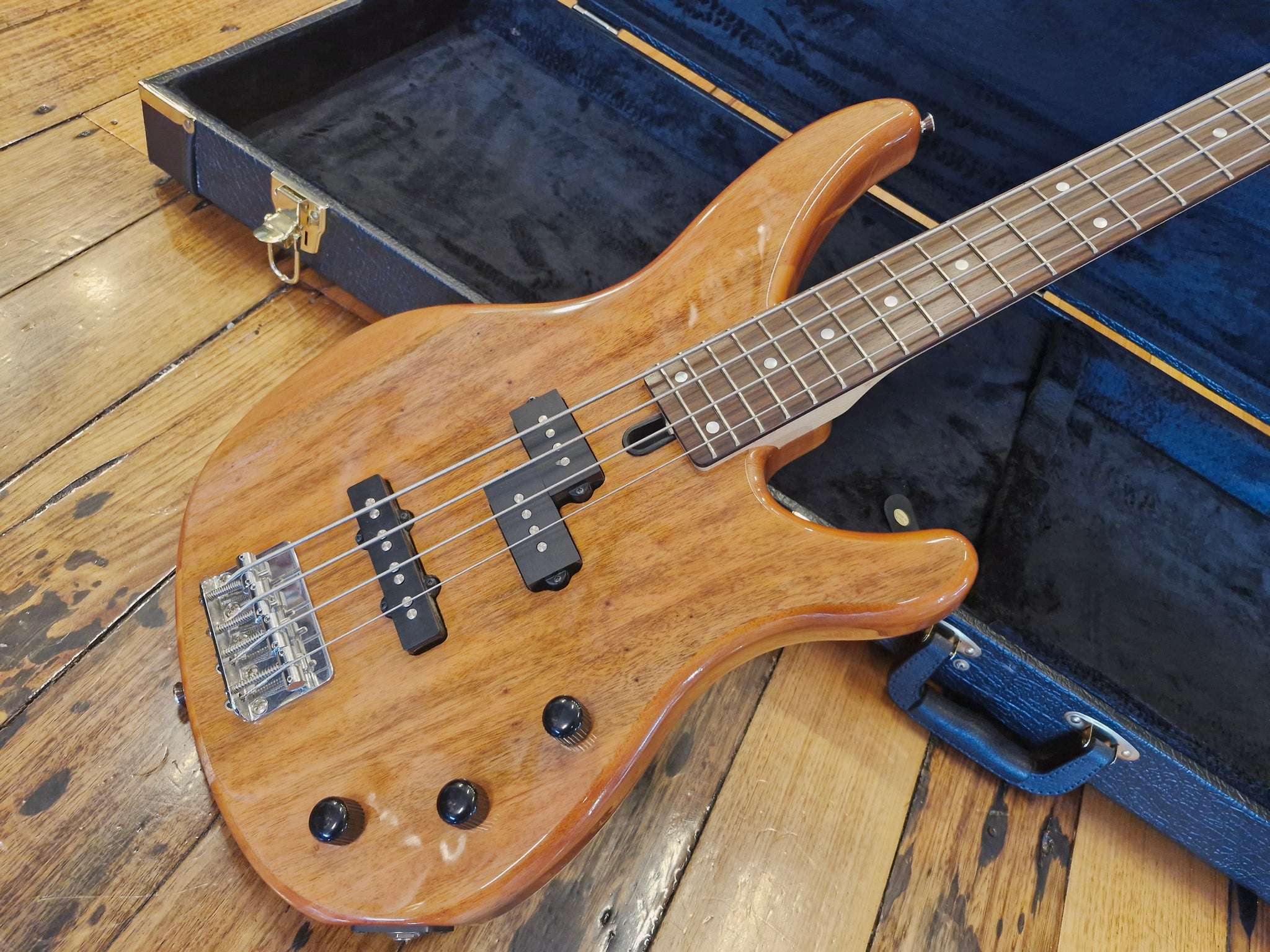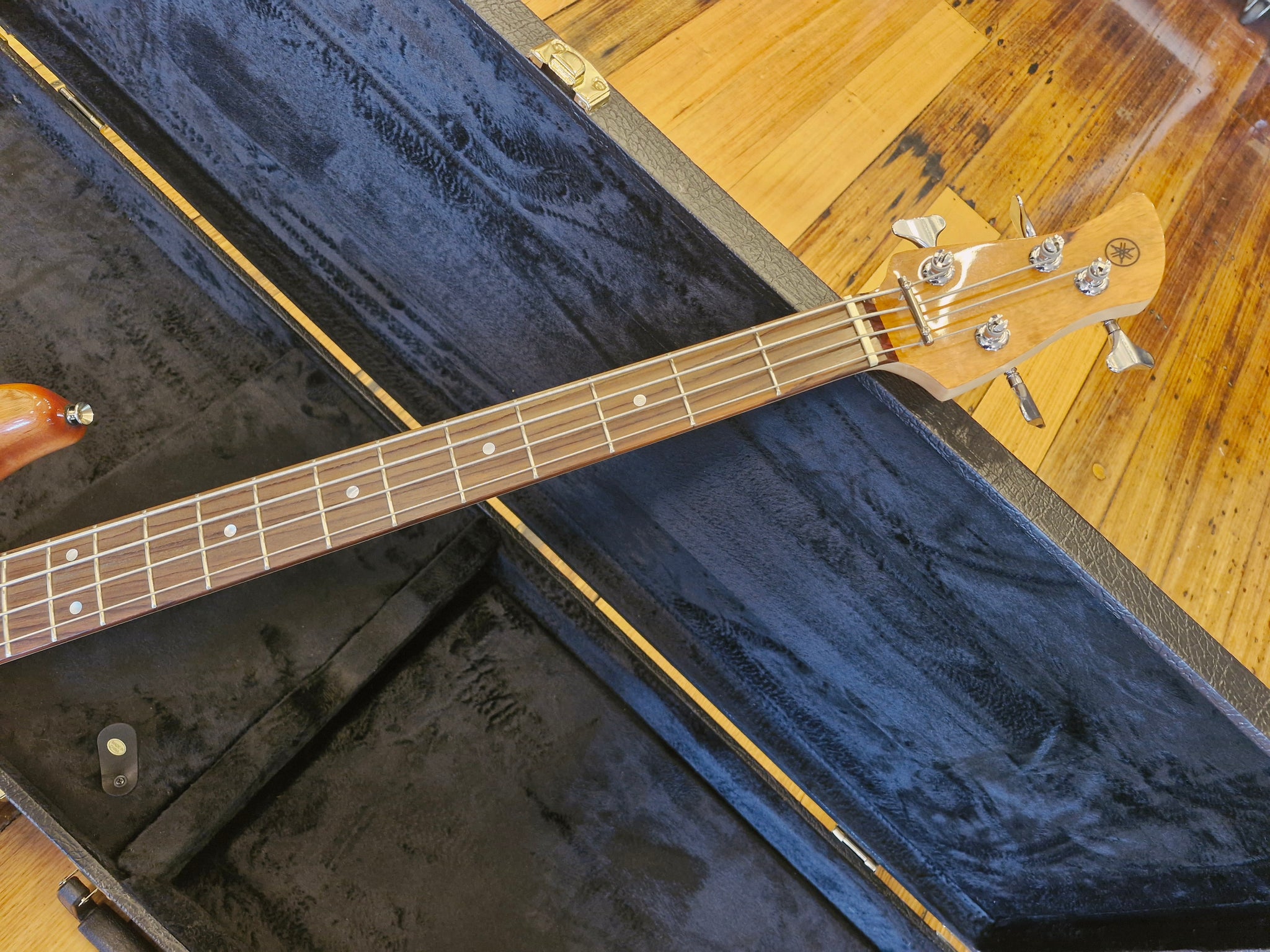 This Yamaha TRBX174EW bass guitar is in flawless, like-new condition with no dents. It offers a smooth, exceptional playing experience and includes a protective hard-shell case. Crafted with an exotic wood top, mahogany body, maple neck, a combination of split and single-coil pickups, and chrome hardware, this high-quality, stylish instrument is an excellent choice for beginners. Finished naturally, it combines both aesthetic appeal and reliable performance.